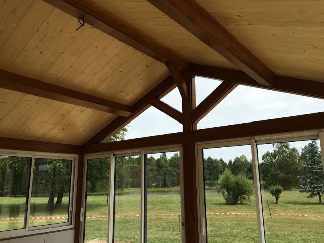 Nos vérandas en ossature bois apportent lumière et confort aux espaces de vie. Elles permettent de créer un espace supplémentaire chaleureux et lumineux, idéal pour une salle à manger, un salon ou un bureau. Grâce à des solutions de vitrage performantes et à une isolation optimisée, la véranda devient un lieu agréable tout au long de l’année, parfaitement intégré à votre maison existante.